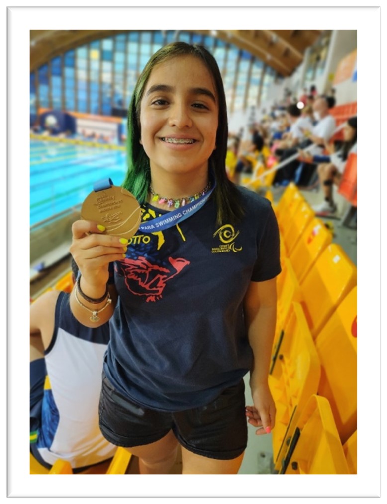 Primera medalla paralímpica en para natación para una mujer colombiana. Laura González, sobreponiéndose a la adversidad y con la tenacidad que la caracteriza subió al podio en la prueba de 100 mariposa.  ¡¡¡Grande, maravillosa, ejemplar!!!
