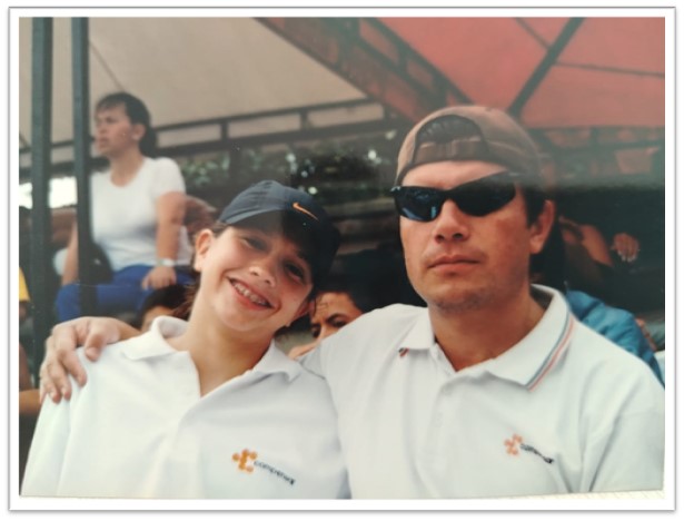 Sara y Laura listas.  Como fue tradicional durante estos años, de papá encargado y entrenador orgulloso.